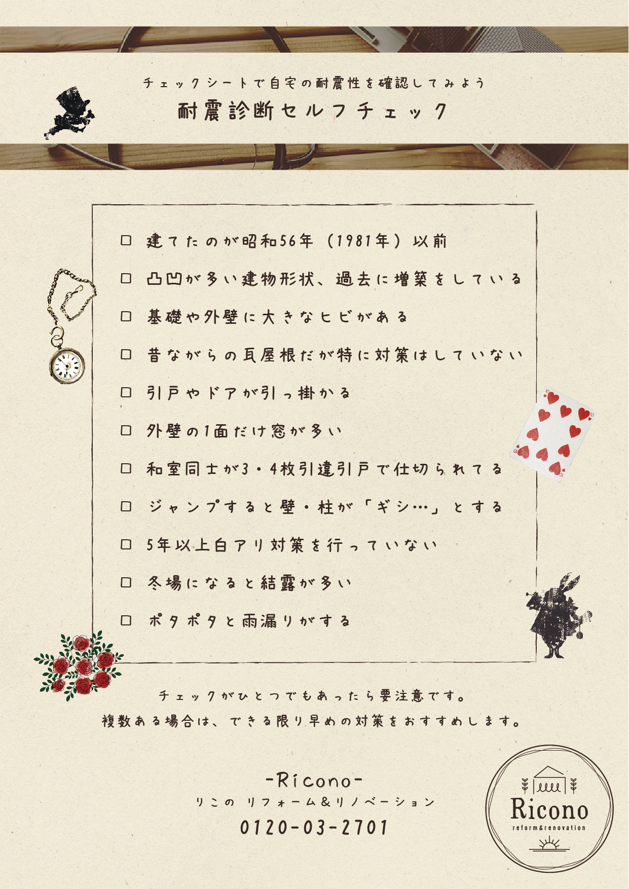 チェックが1つでもあると要注意です。