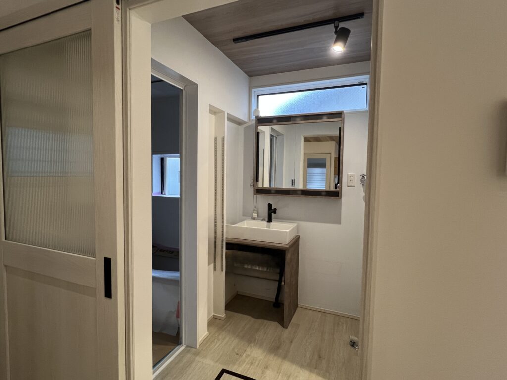 前回はお風呂の紹介をしましたが、今回はその隣、「洗面所」のメイキングを